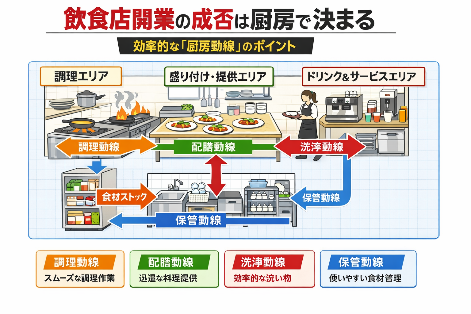 飲食店開業において、「厨房が狭いからうまくいかない」と考える人は少なくありません。 しかし実際には、繁盛店ほどコンパクトな厨房で高い生産性を実現しているケースが多くあります。 重要なのは広さではなく、「設計」です。 小さ […]